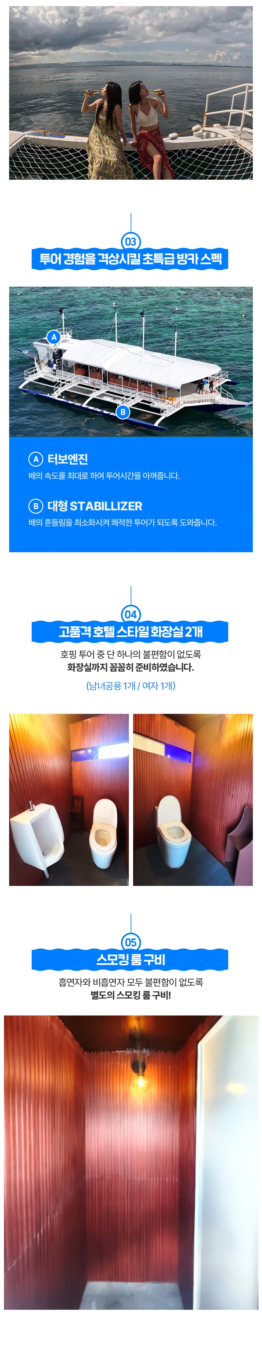고급 BBQ, 제트스키 무료, DJI 카메라까지 제공하는 호핑투어가 있습니다.