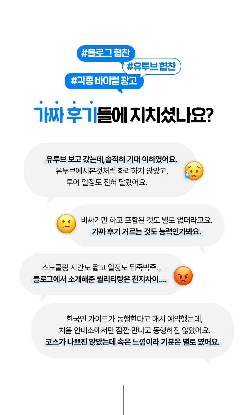 광고와 협찬으로 포장된 가짜 리뷰를 거부했습니다.