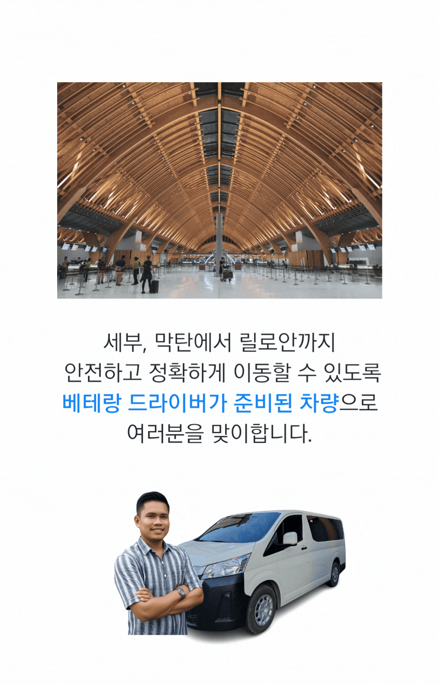 필리핀 도로 사정에 능통한 전문 기사님이 배정되어, 장거리 이동도 안심하고 맡길 수 있습니다.