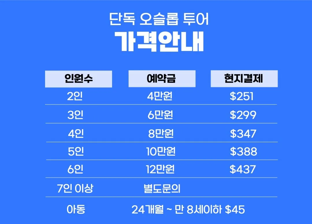 단독 오슬롭 투어 전체 코스 구성