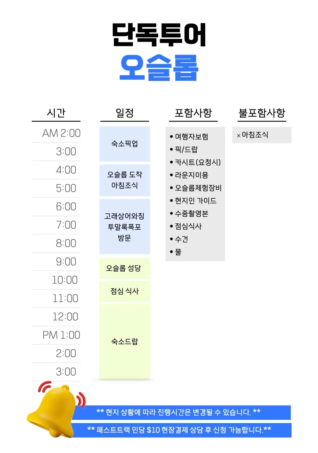 ※ 패스트트랙 옵션: 1인 $10 (사전 신청 필수)